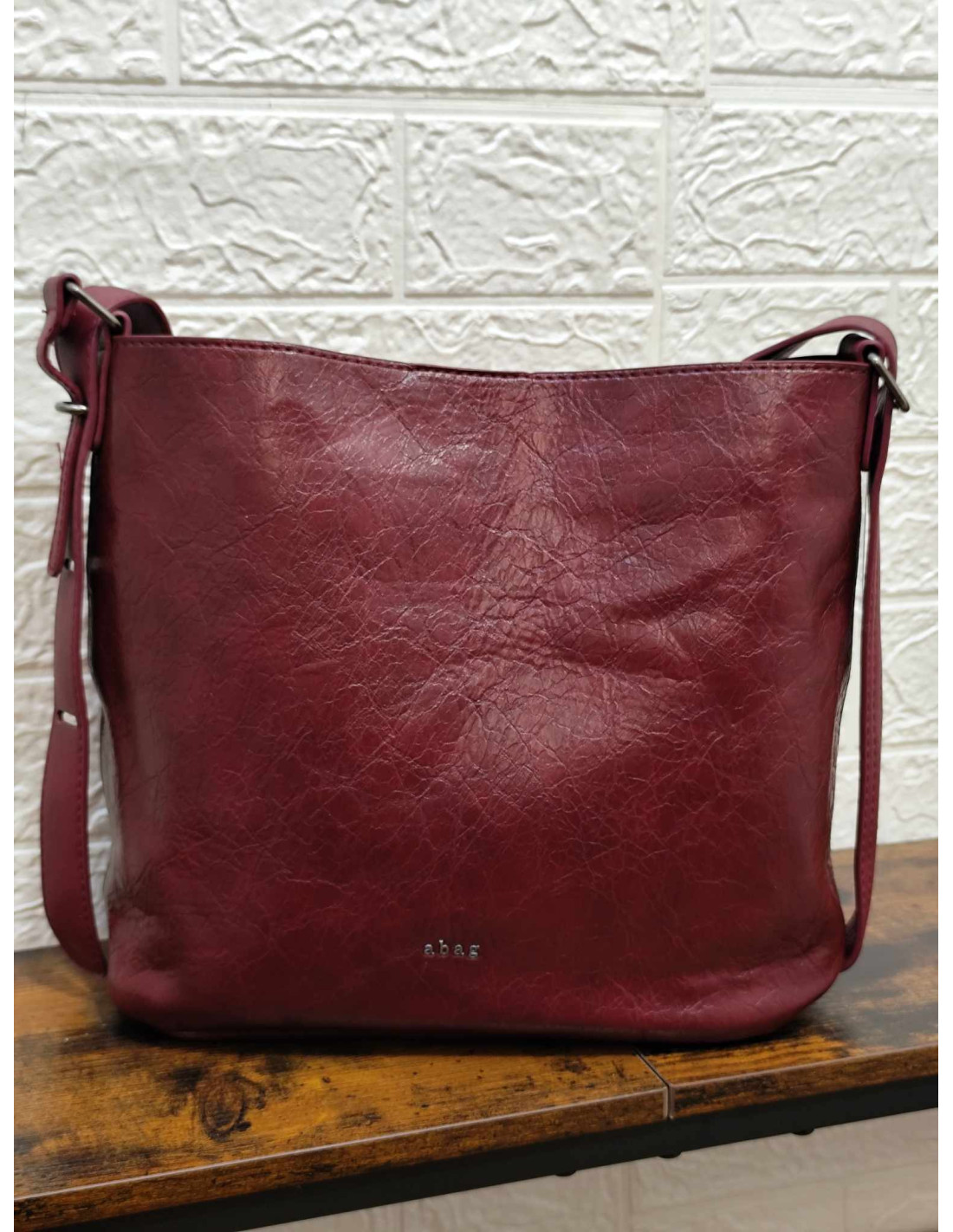 Bandolera de piel sintética con correa ajustable y cierre de cremallera.