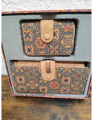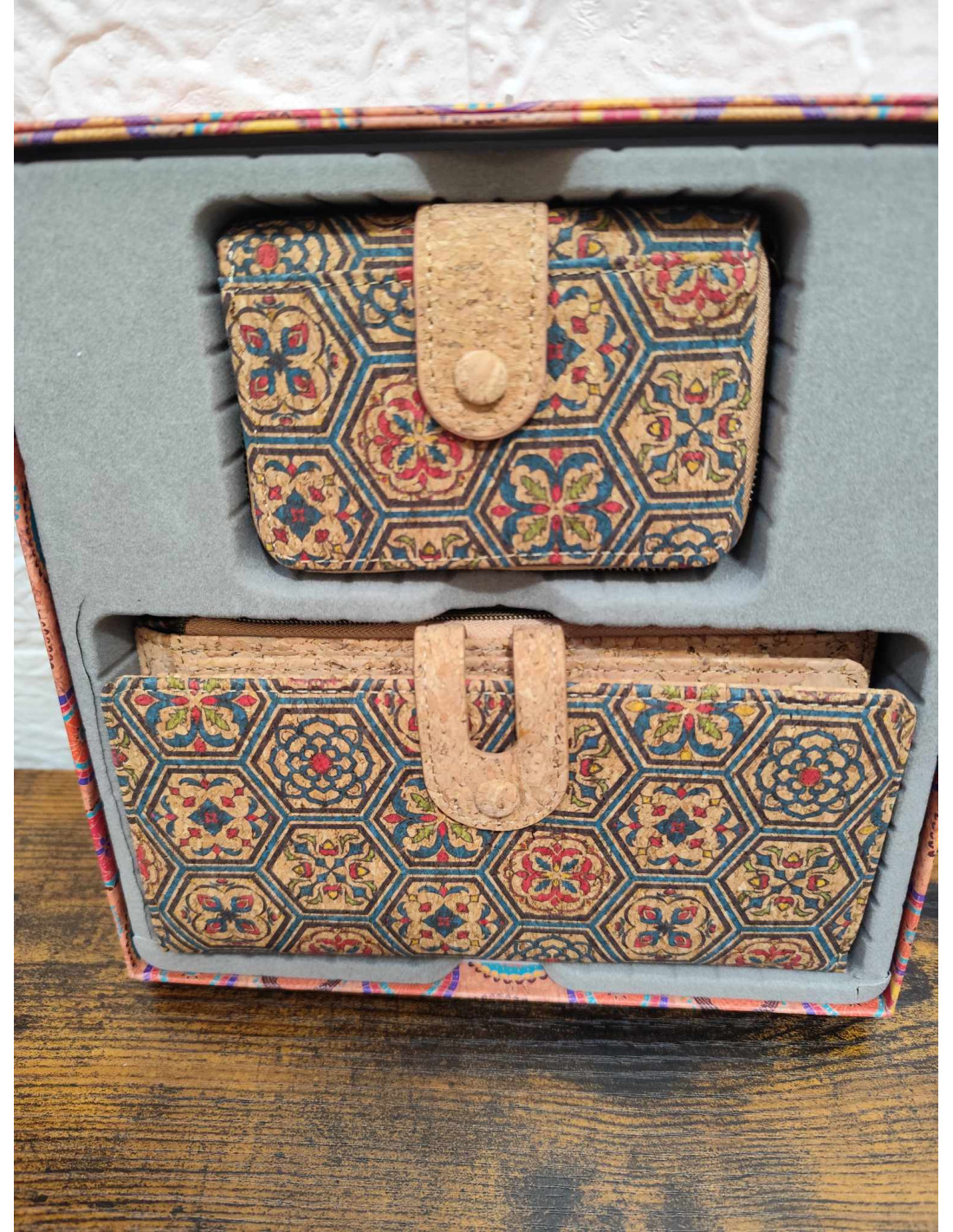 Pack práctico y elegante compuesto por un monedero pequeño con cierre de cremallera, ideal para guardar monedas o pequeños objetos de forma segura, y una cartera a juego con varios compartimentos. La cartera incluye un apartado con cremallera para monedas y otro espacio separado para billetes y tarjetas, facilitando la organización y el acceso rápido a todo lo que necesitas.