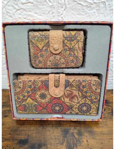 Pack práctico y elegante compuesto por un monedero pequeño con cierre de cremallera, ideal para guardar monedas o pequeños objetos de forma segura, y una cartera a juego con varios compartimentos. La cartera incluye un apartado con cremallera para monedas y otro espacio separado para billetes y tarjetas, facilitando la organización y el acceso rápido a todo lo que necesitas.