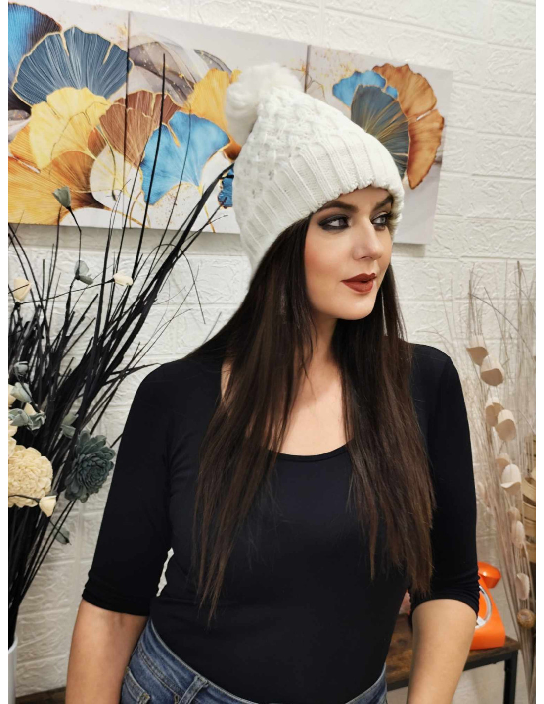 Gorro de lana con pompón y forro interior de pelito suave. Cálido, cómodo y perfecto para los días fríos.