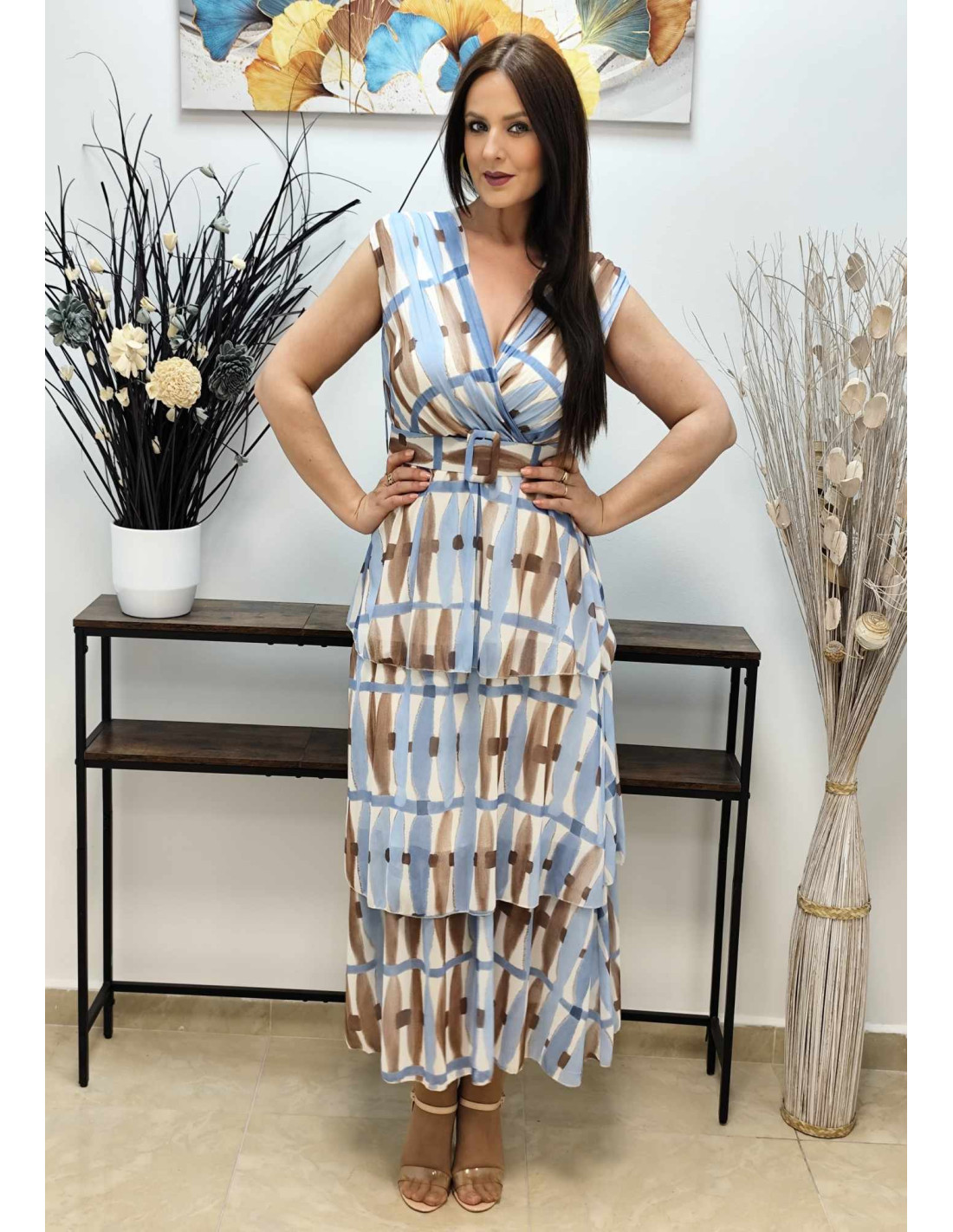 Descubre este vestido de gasa con forro, escote en pico cruzado y una falda con tres volantes que aportan movimiento. Cuenta con goma en la cintura para un ajuste cómodo e incluye un cinturón rígido a juego. Es talla única, recomendado para tallas 36 a 44.