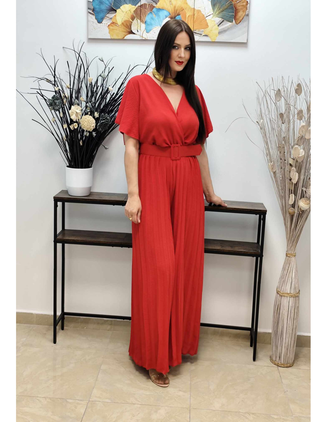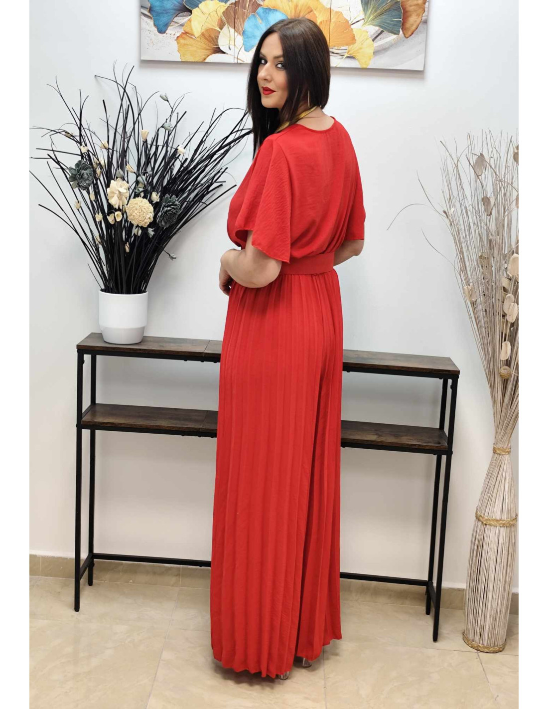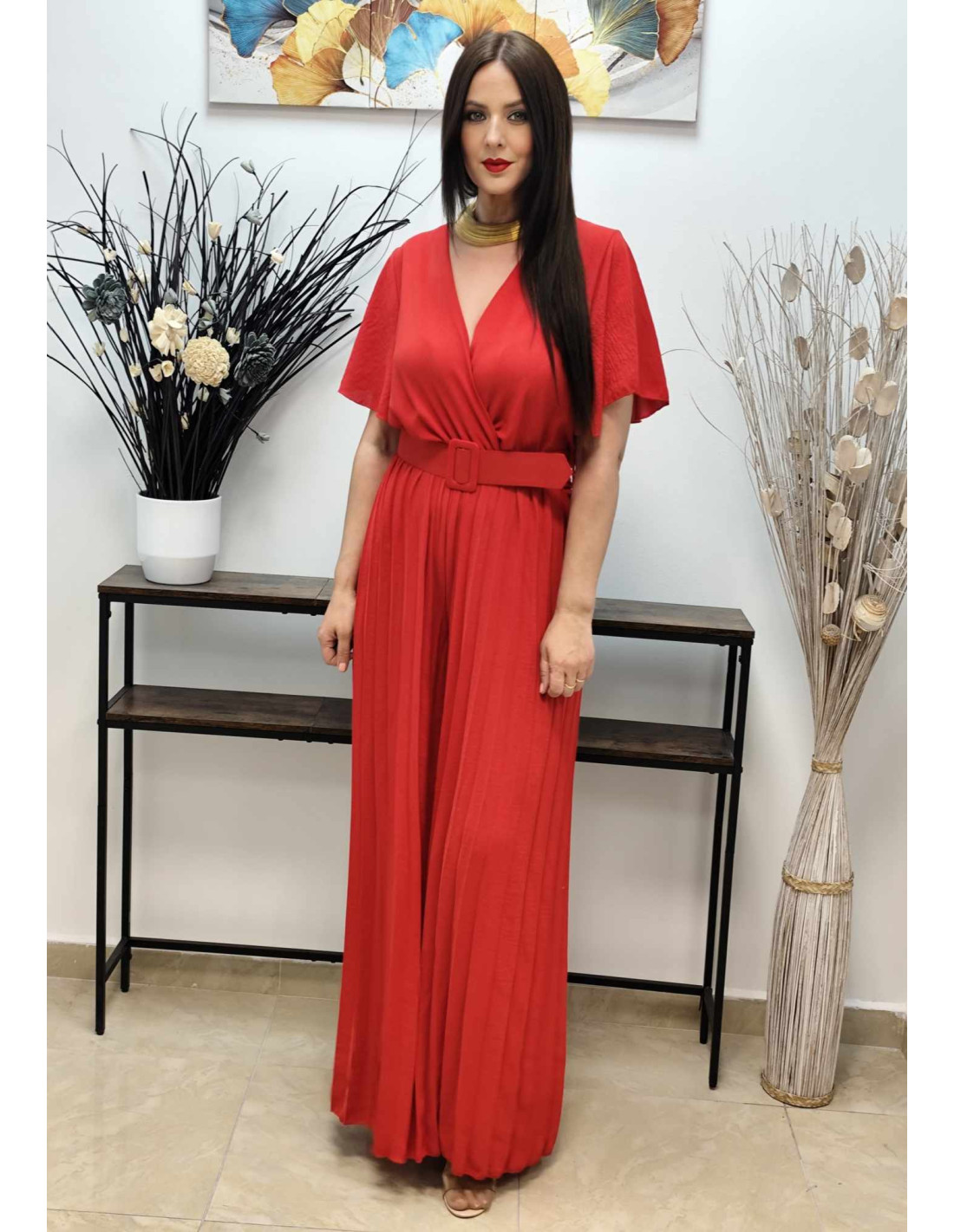 • Diseño: Mono con pantalón palazzo plisado de gran caída.